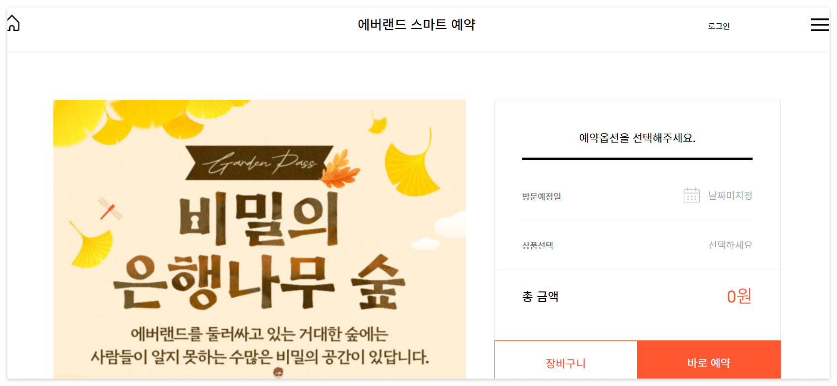 * 에버랜드 이용권 우대 혜택은 은행나무 숲 내 명상장의 근무자에게 문의해주세요.